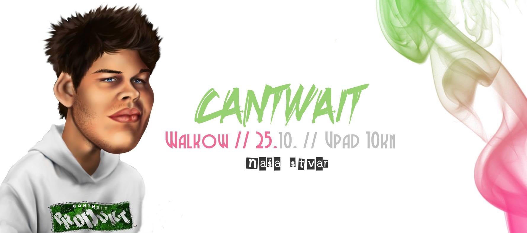 Ove subote 25.10.2014. u Vinkovce, u Walkow dolazi mladi perspektivni MC iz Beograda, član Bassivity Digital izdavačke kuće. Cantwait je nedavno završio svoj najnoviji album te kreće s promocijom po Balkanu. Na stage-u će mu se pridružiti i pjevačica Eeva. Upad na event je 10 kn. Dodatni info: FB Event