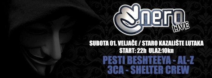 Udruga za promicanje urbane kulture “ZDANJE” organizira: ENERO – live koncert u subotu 01.02. u prostoru starog kazališta lutaka. Kao predgrupe nastupit će: Pesti Beshteeya, AL-Z, 3CA i Shelter Crew. Startamo u 22h, a cijena ulaza je 10kn. Zadar živjeli! FB EVENT